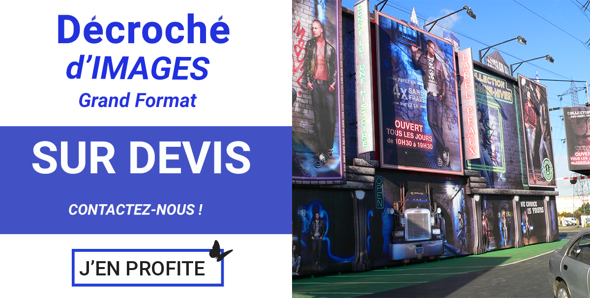 grand formatL'impression est devenue aujourd'hui l'élément incontournable de la Publicité. Sur n'importe quelle surface et dans n'importe quel format, votre image sera mise en valeur pour promouvoir votre Enseigne, votre logo ou toutes autres manifestations que vous souhaiterez réaliser. Une bâche posée sur un cadre en aluminium, un adhésif collé sur une vitrine, une affiche publicitaire, un panneau PVC fixé sur votre enseigne, un Stand Parapluie installé dans votre expo, un Drapeau Publicitaire, un Kakémono, un Photocall, tous ces produits vous sont proposés afin de sublimer votre message publicitaire.