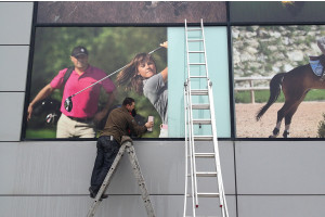 Pose d'Adhésifs micro-perforés grand format pour DECATHLON