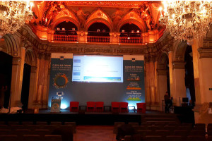 Création sur mesure de trois châssis en alu avec pieds auto-portant et jambes de force en très grand format pour une conférence.